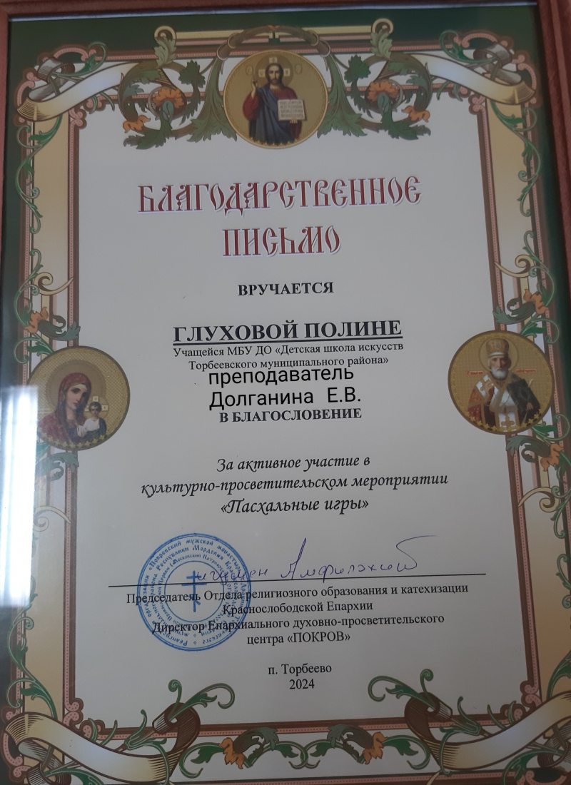19 мая В воскресной школе при Покровском мужском монастыре с. Дракино состоялся праздник Светлой Пасхи- День жён мироносиц.Гостям праздника был показан замечательный концерт в котором приняли участие учащиеся класса преподавателя Долганиной Е.В.: Балаева Ксения,Степушкина Арина,Глухова Полина, Филатова Софья, Христова Александра, Мишин Евгений, подарив музыкально- творческие работы и стихи.Ребята с большим настроением поучаствовали в различных играх,эксурсии на колокольню .
