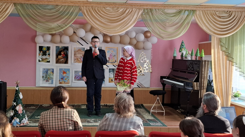 26 января в Детской школе искусств состоялось мероприятие " Рождественская встреча". От нашего класса выступили: Куликова Дарья, Степушкина Арина, Мишины Евгений и Софья, Маскайкина Ульяна.Председатель отдела религиозного образования и катехизации Краснослободской епархии игумен Амфилохий вручил ребятам сладкие призы..