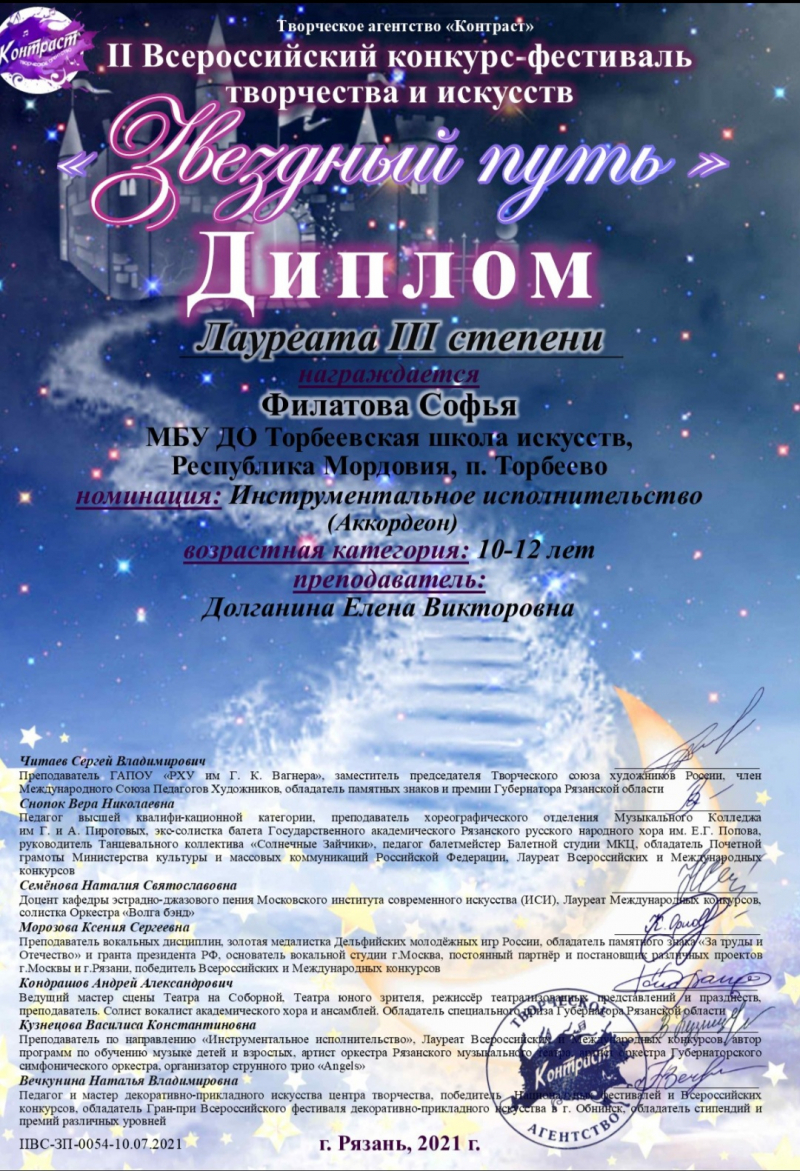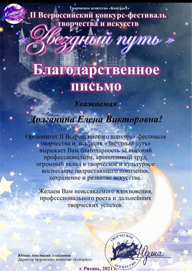 Участие во Всероссийском конкурсе-фестивале творчества и искусств"Звездный путь" 04 июня 2021