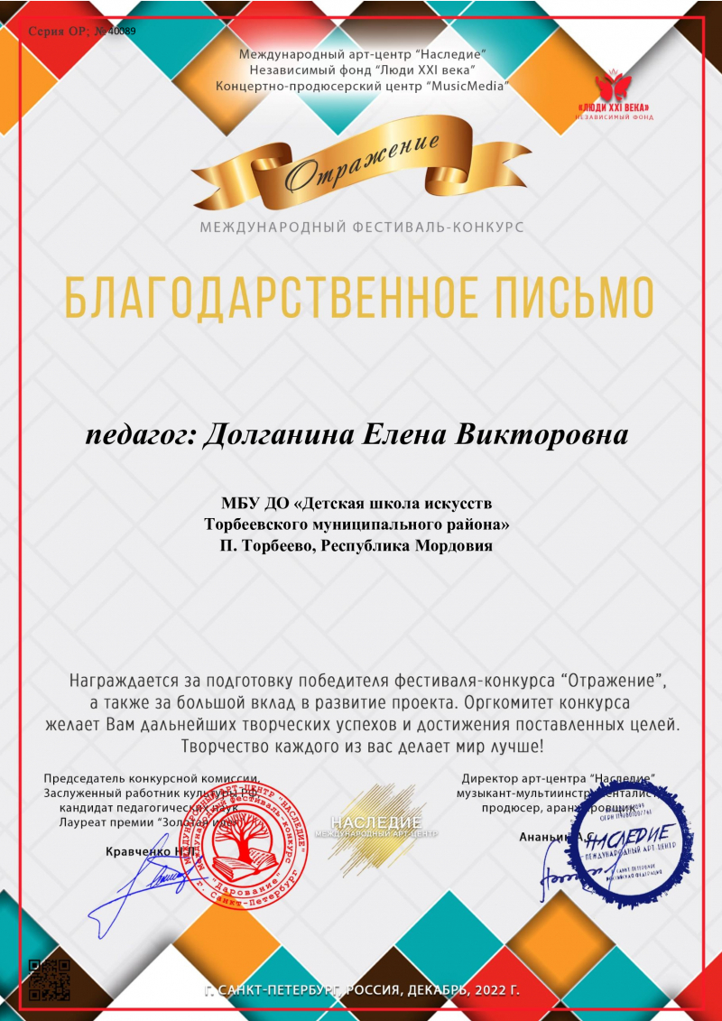 Международный творческий фестиваль "Отражение" январь 2023 год