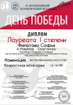 Мои участницы этого фестиваля Филатова Софья и Куликова Дарья, хоть и не смогли побывать на московском фестивале очно, но их творческим работам жюри фестиваля дало высокие оценки. Девочки награждены Дипломами Лауреатов.