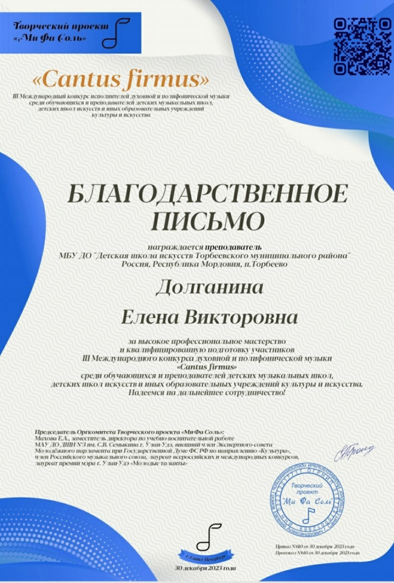 Подведены итоги III Международного конкурса исполнителей духовной и полифонической музыки «Cantus firmus», который проведен творческим проектом "Ми, Фа, Соль". (https://vk.com/mi_fa_sol)
