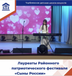 26 апреля на сцене РДК состоялся Районный патриотический фестиваль " Сыны России". Лауреат фестиваля- Степушкина Арина.