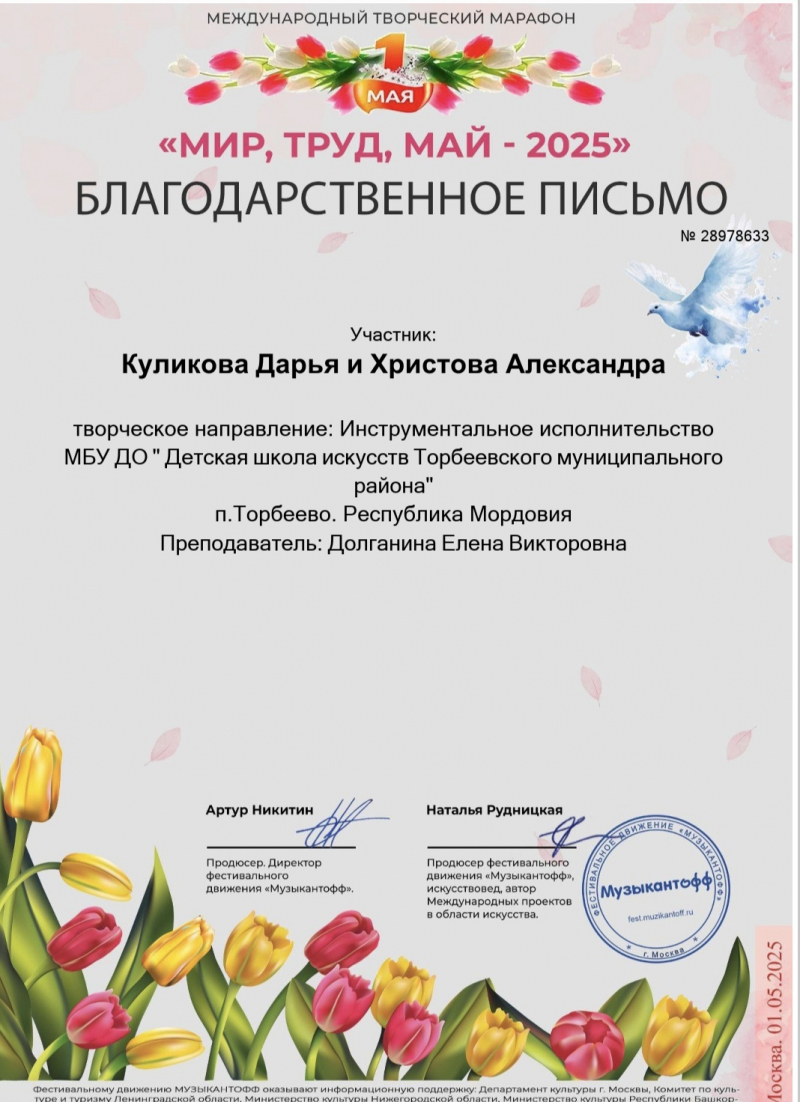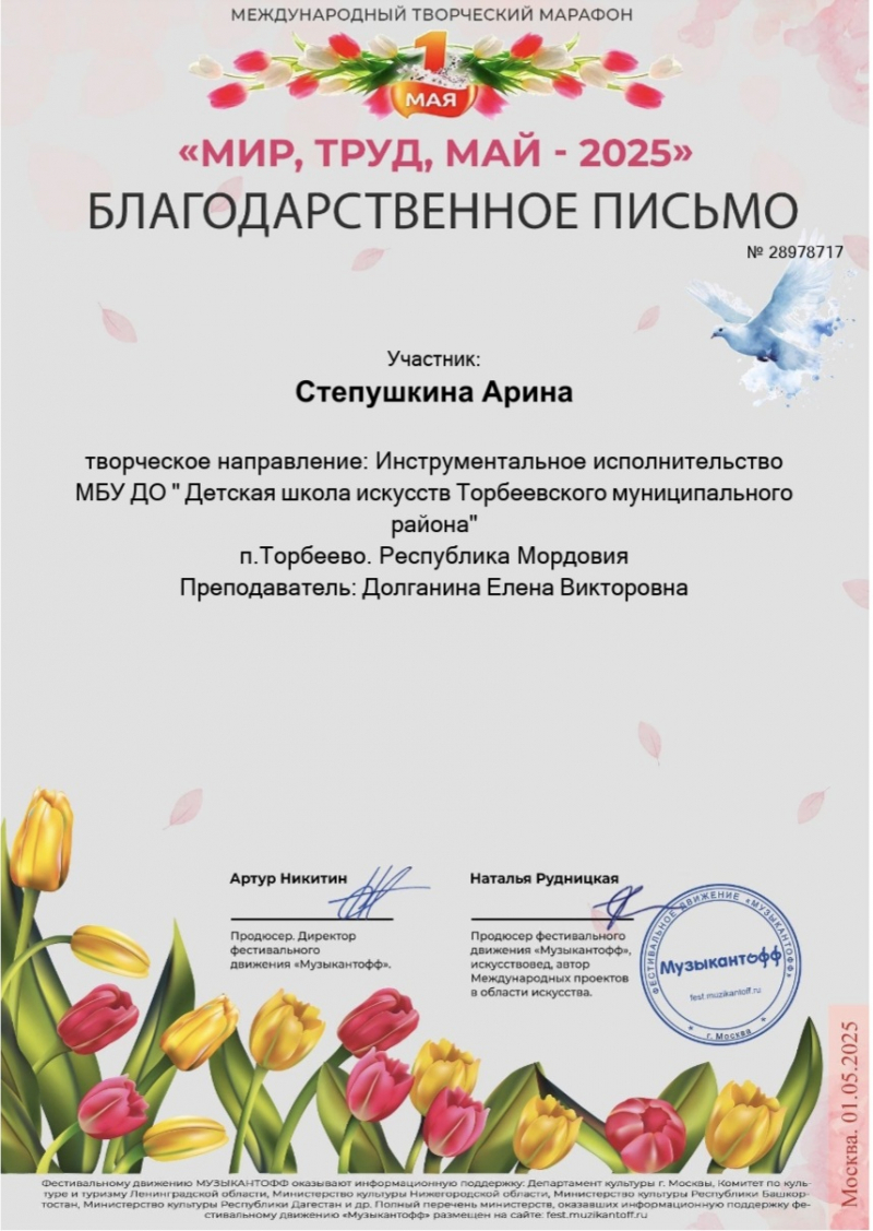 Международный творческий онлайн- марафон " МИР, ТРУД, МАЙ -2025"